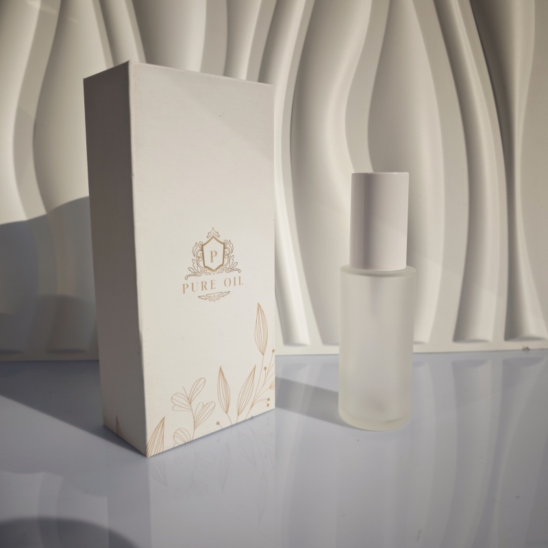 Botella de bomba de suero de aceite Essentia de lujo personalizado para ojos, botella cuentagotas de vidrio esmerilado mate de 30ml 1oz 50ml con caja